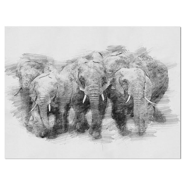 Design Art Designart Black And White Elephant In Pencil Sketch Animals Print On Wrapped Canvas 20 In Wide X 12 In High Walmart Com