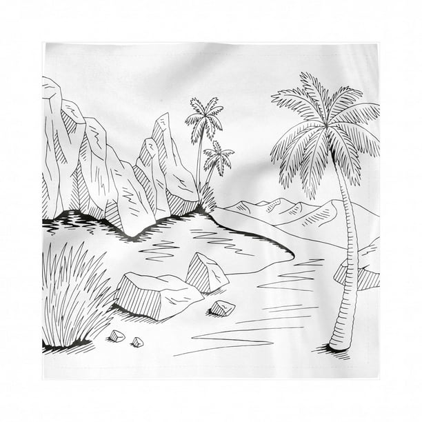 Oasis Decorative Satin Napkins Set Of 4 Hand Drawn Pencil Sketched Outline Drawings Of A Landscape Safari Elements Square Fabric Party Dinner Napkin 12 Charcoal Grey White By Ambesonne Walmart Com